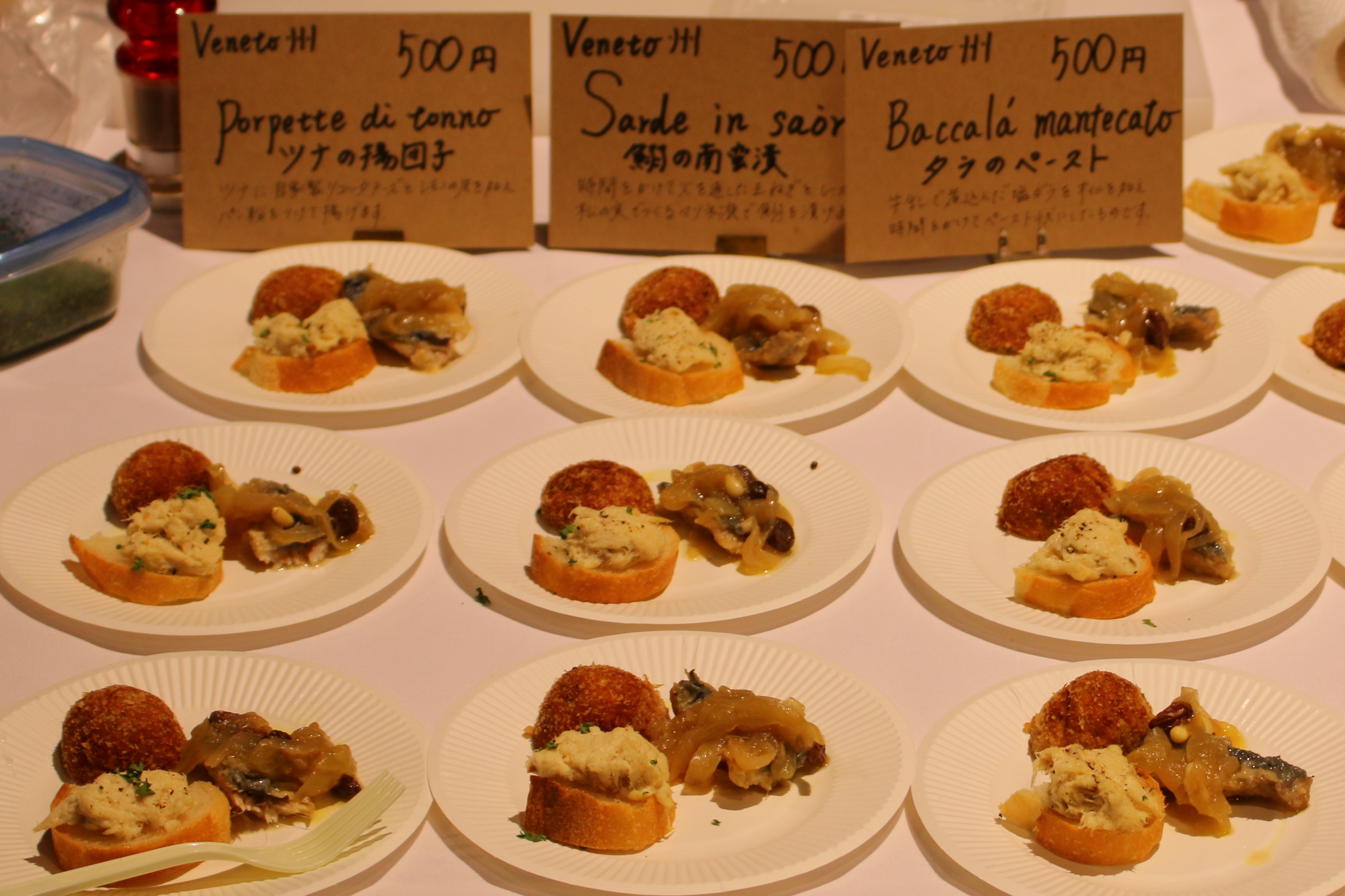 この日はイタリアで修行して現地の郷土料理を日本に伝えるシェフがいるレストランやバール25軒が出店して、それぞれの店が得意とする地方の料理やお菓子、お酒などを紹介した。