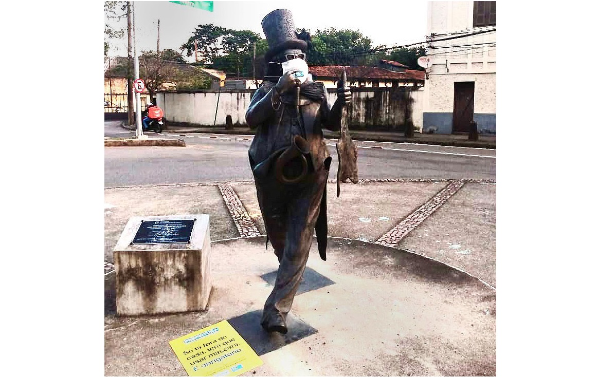 法令が施行された23日(木)、リオ市のさまざまな場所にある40以上の彫像が不織布マスクを着用した。
