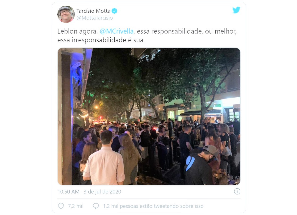 市議会議員のタルシジオ・モッタ(社会主義自由党/RJ)氏がSNSにレブロンの夜の街の様子を投稿して、営業再開を許可したマルセロ・クリベラ市長に対し「(この状態を招いている)責任、正確にいえば“無責任”(の所在)は、あなたにある」という批判的なメッセージを投稿したとも報じた。