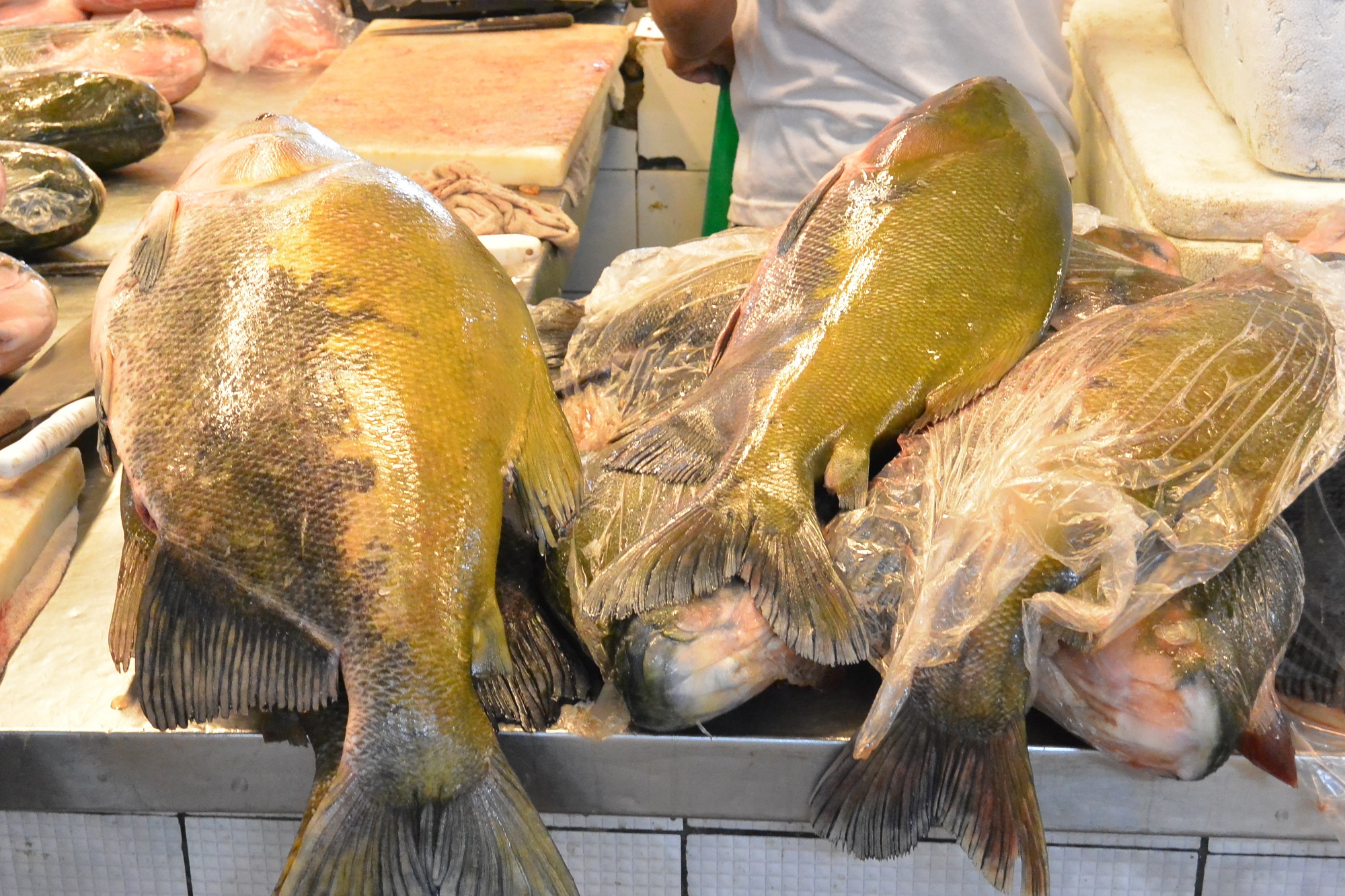 モデルな市場には魚がたくさん。扱われている種類も豊富だが、世界最大の淡水魚ピラルクー、黄色や赤、青など様々な種があるトゥクナレーなど、アマゾンならではのクセツヨ魚の宝庫だ。